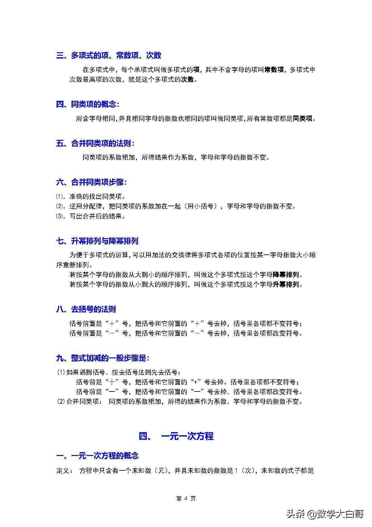 三、多项式的项、常数项、次数