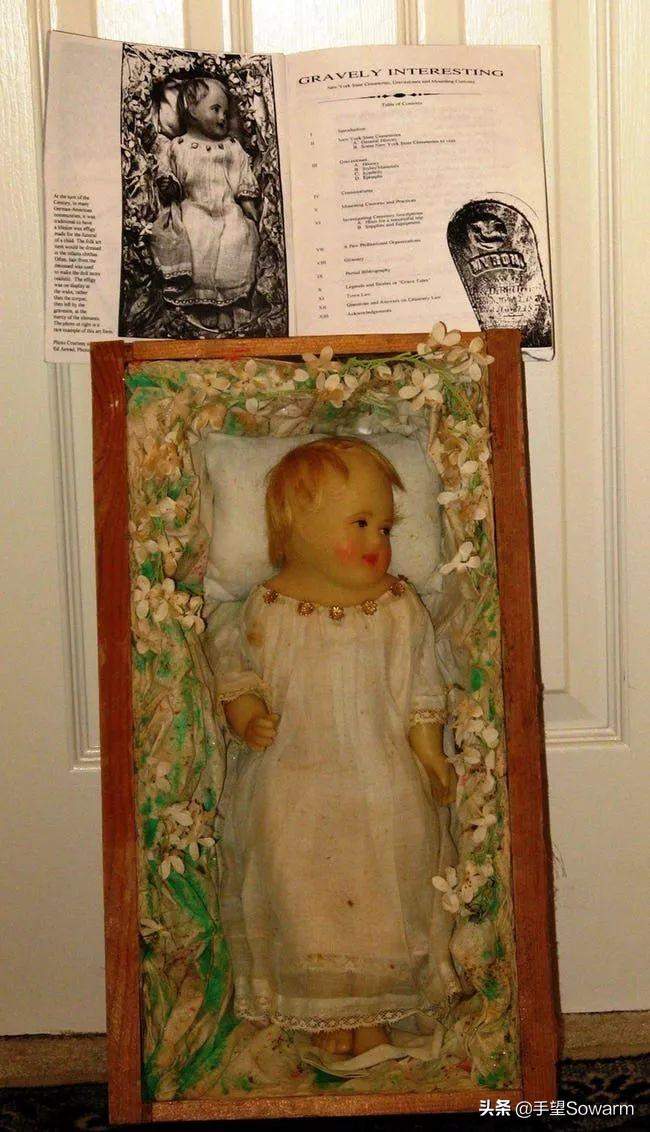 夭折的婴儿大概是最容易拍的了,因为婴儿本来就总是在睡觉,工作室的人会为孩子穿好衣服,放在摇篮里,装点好花朵和娃娃进行拍摄。