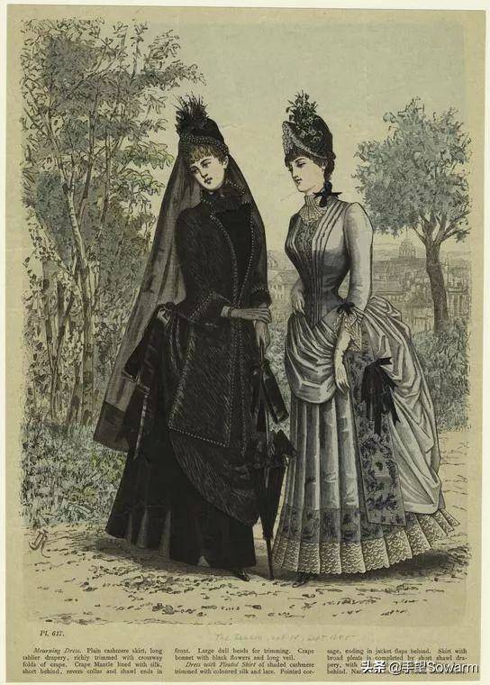 1884年约翰·舍伍德夫人的“维多利亚时期版时尚杂志”中就指出,这种绉布不仅很贵还很难穿。最传统的面纱长度达到1米82左右,需要绑在后脑勺的小帽子上,又厚又重而且还有两层,看不清路不说连气都喘不上来。而且一沾水必定掉色,黏在脸上还超级难洗,简直是夏天的灾难。