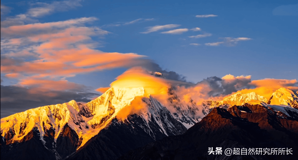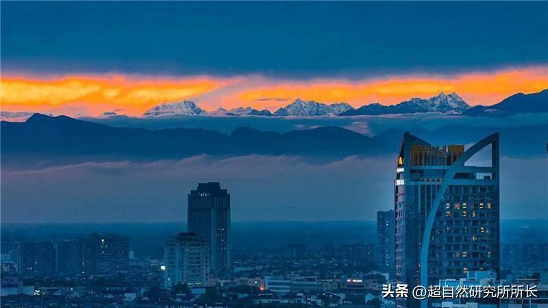 对照现代卫星,在昆仑的区域里一座神山开始出现在我们面前,不知道你们有没有成都的朋友,他们可曾告诉过你,如果你来成都,说不定哪天就会突然发现天空上竟然挂着一排像天宫一样的雪山,它们泛着一种绮丽的金光,你会看得出神;