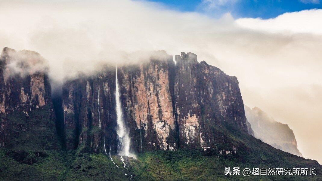 并且整个山上目前80%左右的生物都是当地所特有,而世界其他地方没有,新的物种还在持续被发现,更神奇的是,如此平坦的山顶,一般情况下是无法储存水源的,但现实情况是罗奈马山何止是有水,从山顶倾泻而下的大大小小七十多条瀑布,直接成了奥里诺科河水系、亚马孙河水系等许多南美洲河流的发源地,世界上落差最大的瀑布就在这里;