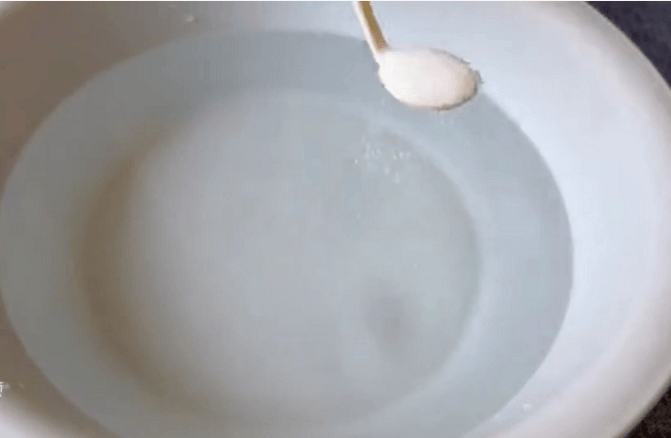 接着,我们准备装有清水的盆子并往盆中加入食用盐,食用盐具有消毒杀菌的能力,能够去除汗渍中的氨基酸成分,还能保持衣服原有的光泽。