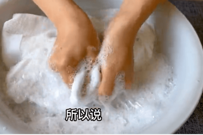 注意,搓洗完后要使用清水多清洗几遍,把上面的清洗液彻底清洗干净,因为残留清洗液时也会使衣服容易发黄。