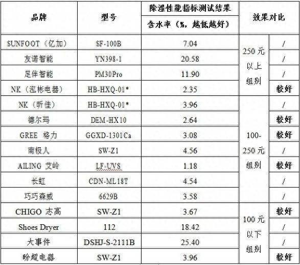 本次比较试验涉及“足伴智能”“德尔玛”“格力 ”“友诺智能”“SUNFOOT(亿加)”“NK(泓彬电器)”“长虹 ”等品牌在内的15款鞋子烘干器,单价从79至399元不等。