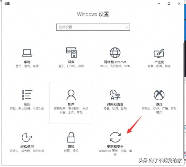1、同时按下键盘快捷键Win+I,打开设置界面,点击“更新和安全”。