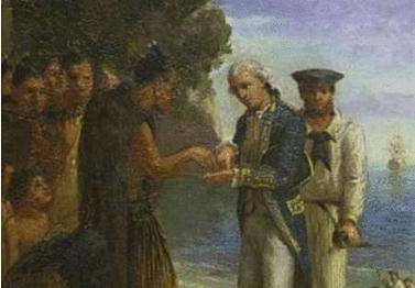 詹姆斯·库克舰长登陆后正在与毛利人交流