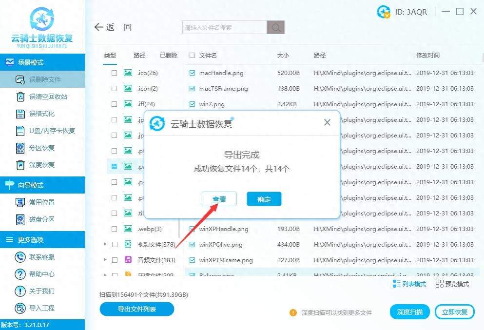 等恢复完成后的提示中点击“查看”即可查看恢复出来的png文件啦。