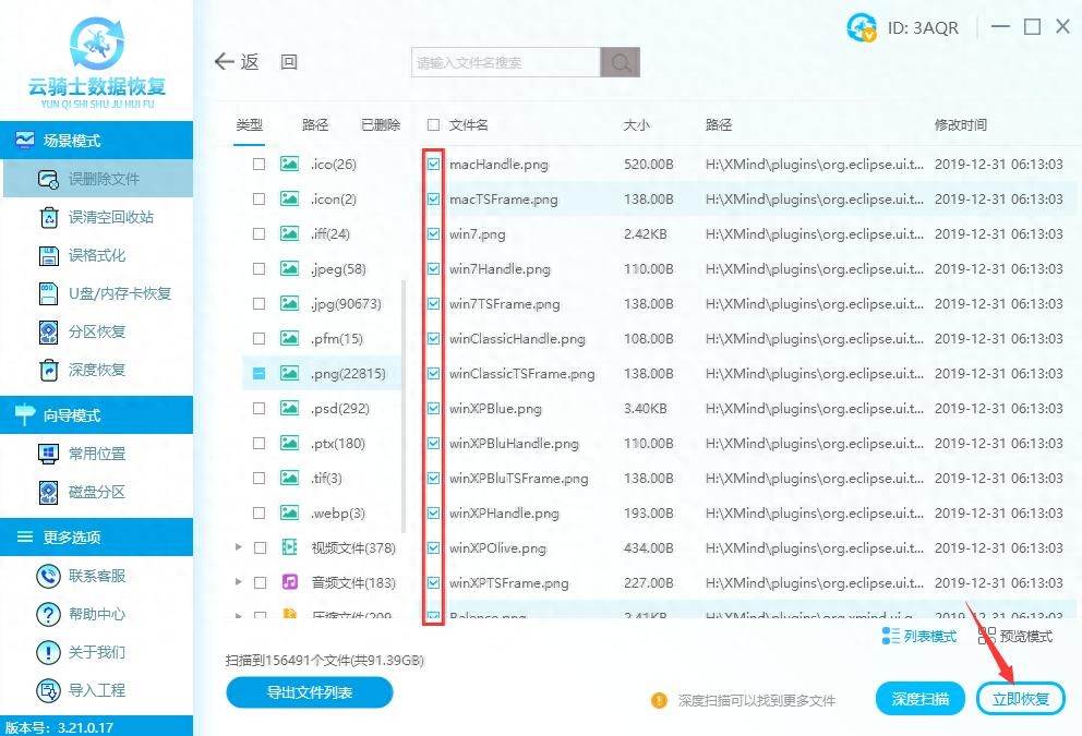当png文件丟失或刪除在任何存储设备中,这并不意外着永久删除了数据, 在png文件没有被覆盖前,删除的png文件是可以借助png恢复软件进行恢复的。png恢复软件推荐使用云骑士数据恢复软件,此软件在数据恢复行业界拥有强大的地位,它不仅可以恢复多种常见的文件类型,如图片类型:png、jpg、gif、psd等;视频类型:3pg、asf、avi、flv等;文档类型:doc、ppt、txt、xls等。而且还为用户提供了保存恢复的png文件之前免费预览的服务。
