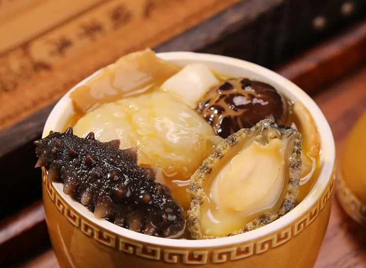 这道菜不仅用料名贵,关键是制作过程中没用到任何调味制品。完全依赖食材之间的配合,经过十几个小时的炖煮,激发食材本身的香味。汤品胶质感十足,食材鲜香可口,荤而不腻,每一口都让人吃出大大的满足感。
