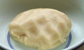3.(油酥面团)将面粉150、热油90g、白糖适量制成甜油酥面团。