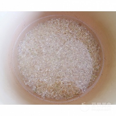 2、大米洗净后,放入适量的清水,电饭煲按下煮饭键,