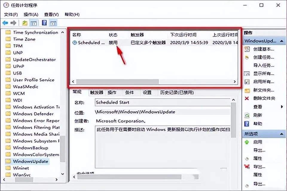 2、随后按照“任务计划程序库 -> Microsoft -> Windows -> WindowsUpdate”这个顺序,把WindowsUpdate里面有的项目都给禁用就可以