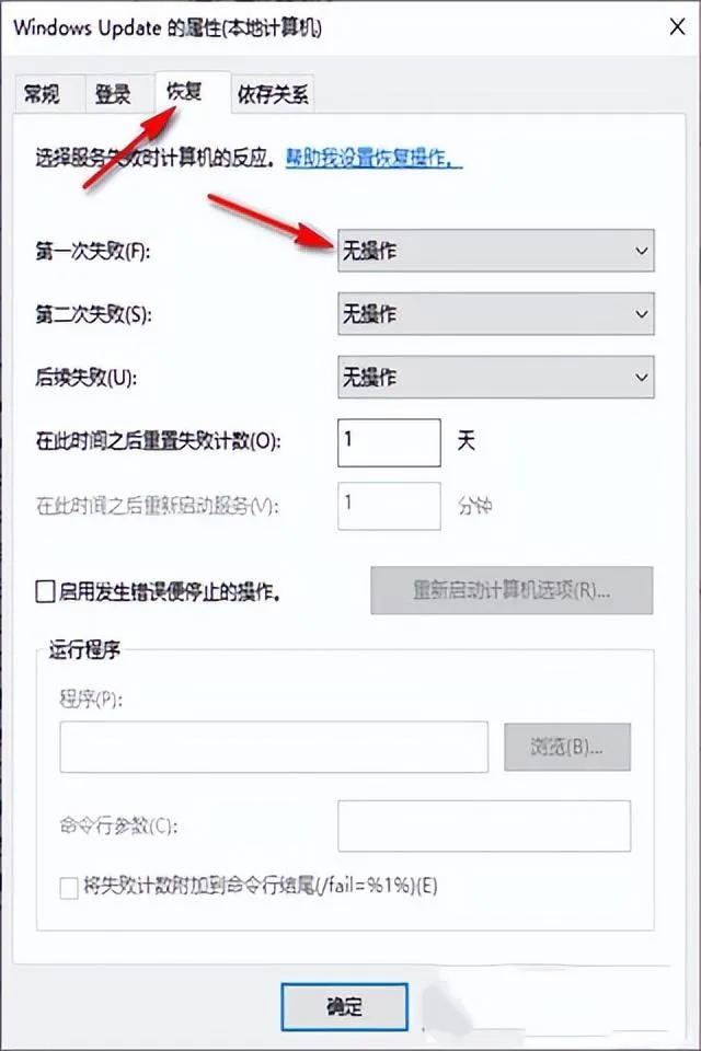 4、最后点击恢复选项,把里面所有的操作修改成为“无操作”即可。