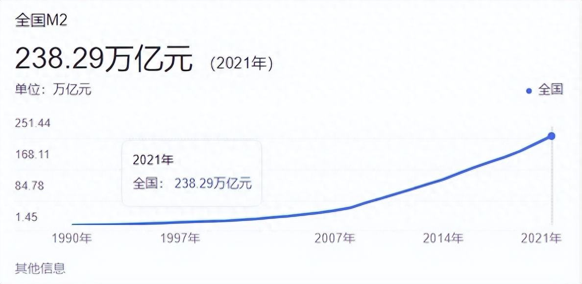 1990年我国M2是1.53万亿,2021年M2是238.29万亿,增长155倍,1990年我国GDP是1.89万亿,2021年GDP是114.37万亿,增长了60倍。那么你们觉得手里的钱是更值钱了还是更不值钱了呢?