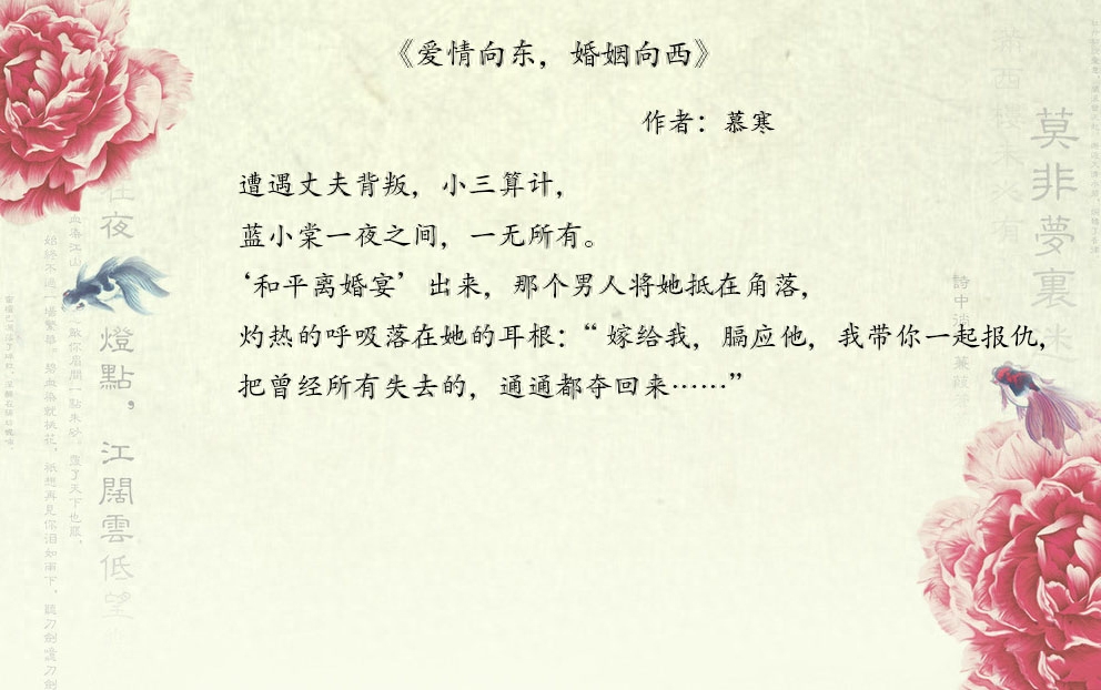 6.《爱情向东,婚姻向西》 作者:慕寒