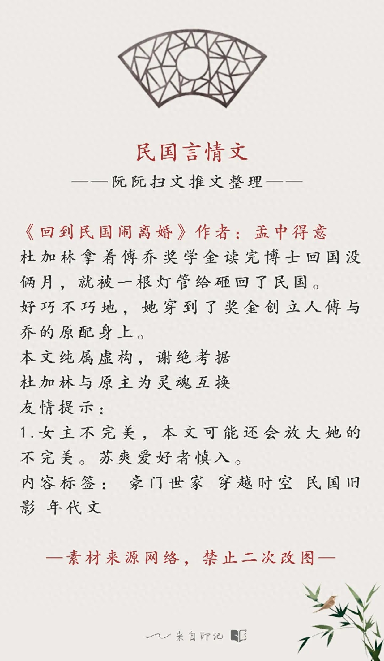 19.《回到民国闹离婚》作者:孟中得意