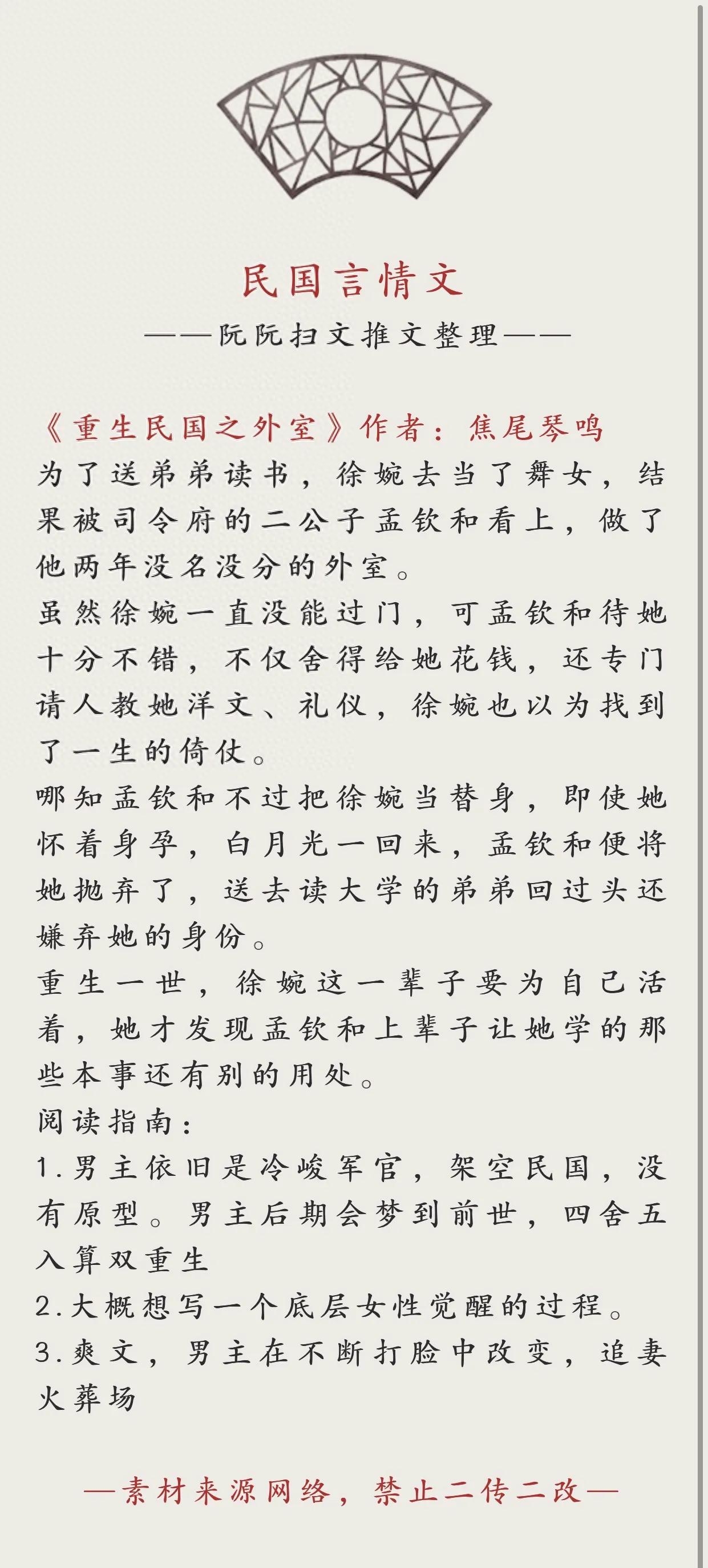 14.《重生民国之外室》作者:焦尾琴鸣