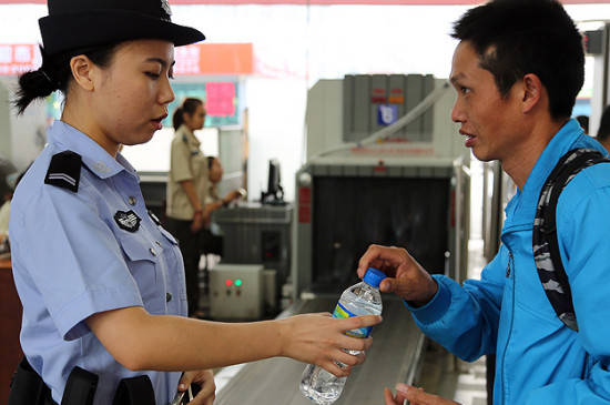 液体检测仪能检测出易燃易爆的液体和水、可乐、果汁的区别。乘客进站通过安检时,需自行将行李内装有液体的容器取出,与行李分开检查。每位乘客可携带果汁、矿泉水、可乐等液体饮料2瓶,每瓶不超过500毫升。