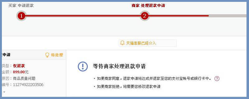 若卖家和买家没有协商好,且卖家违反淘宝购物交易规定并拒绝退款,这时可以在卖家拒绝退款的界面找到“要求客服介入”,提向相关的图片作为证据并输入退款里有后,点击“提交”即可申请淘宝官方客服淘小二进行仲裁。