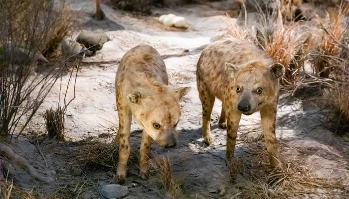 鬣狗是一类强悍的中型猛兽,它们集体猎食瞪羚、斑马、角马等大中型草食动物,甚至可以杀死半吨重的非洲野水牛,并不是靠吃狮子吃剩的残骸和尸骨果腹生活的弱者,相反,狮子则是经常掠夺斑鬣狗的猎物。