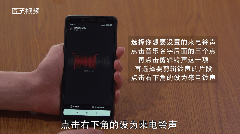 5、再选择要剪辑铃声的片段,点击右下角的设为来电铃声;