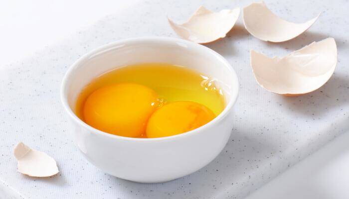 2.鸡蛋大头磕一个小洞,倒出蛋液。