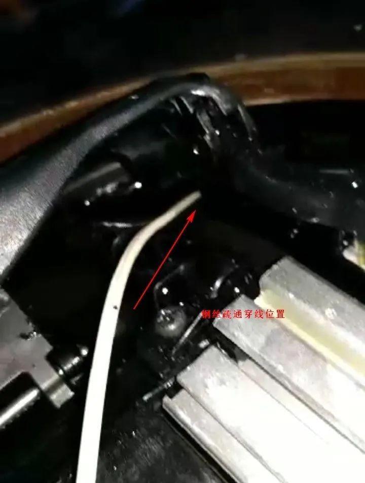 拆除雨刮和护板之后,可以清楚看到一个白色的出水口,用工具扩大出水口。如果排水管的排水依然不太流畅,可以尝试用软钢丝从天窗排水插入疏通,直到这侧排水口可以快速排水为止。