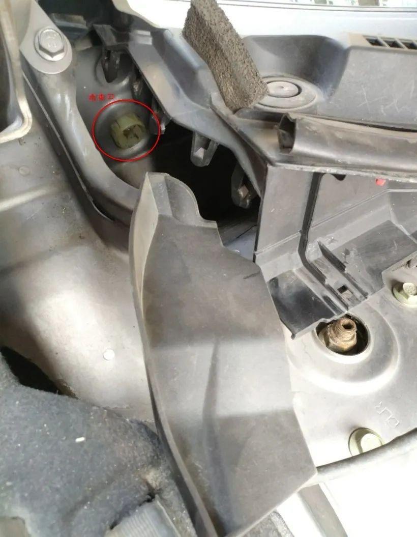 很多情况下,车企为了考虑到防虫,会在天窗排水口处设置一个滤网,而恰恰就是这个滤网挡住了排水管中的垃圾。所以我们要找到车头前方的天窗排水管的出水口,把滤网拆除。