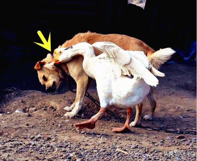 想一下,在农村大鹅连人都不怕,还害怕其它农村生物吗。所以,在农村大鹅欺负其它动物就是常见的事情了。