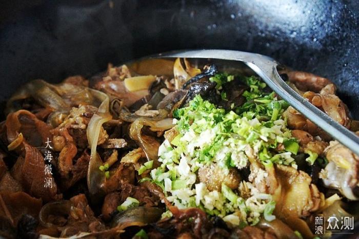 起油锅爆香花椒大料、葱姜,下入炒好的鸡块翻炒,加入酱油翻炒上色,烹入少许料酒去腥,然后加入适量的水,包括浸泡蘑菇澄清后的水,下入泡发的蘑菇,大火烧开,小火炖1小时左右。小鸡基本炖熟,蘑菇炖透,加入宽粉条炖10分钟左右,最后加入盐、香菜末、大蒜大葱末调味,出锅。
