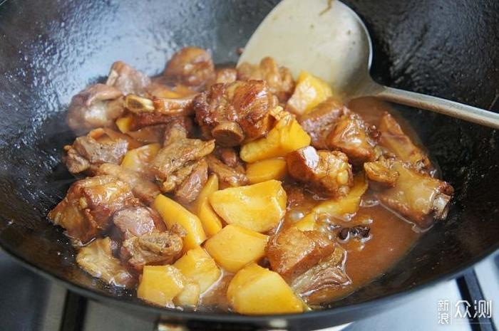 排骨基本炖熟,土豆切滚刀快加入排骨中,继续炖约10分钟左右,出锅装盘。