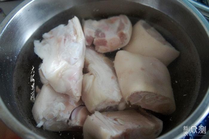 锅中加入适量的水,冷水焯烫猪蹄,大火加热至水沸即可。