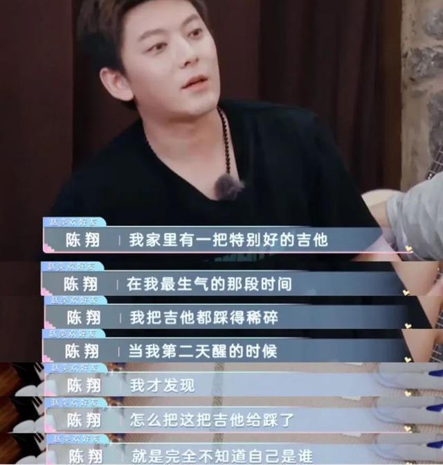 伤感男主陈翔还说醉酒到人事不知的时候,一生气,把家里最贵的吉他砸了,“踩得稀碎。”