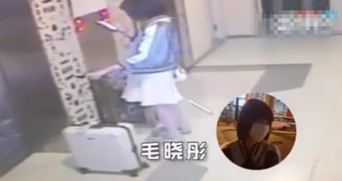视大概一个小时后,毛晓彤推着行李箱走到电梯前。