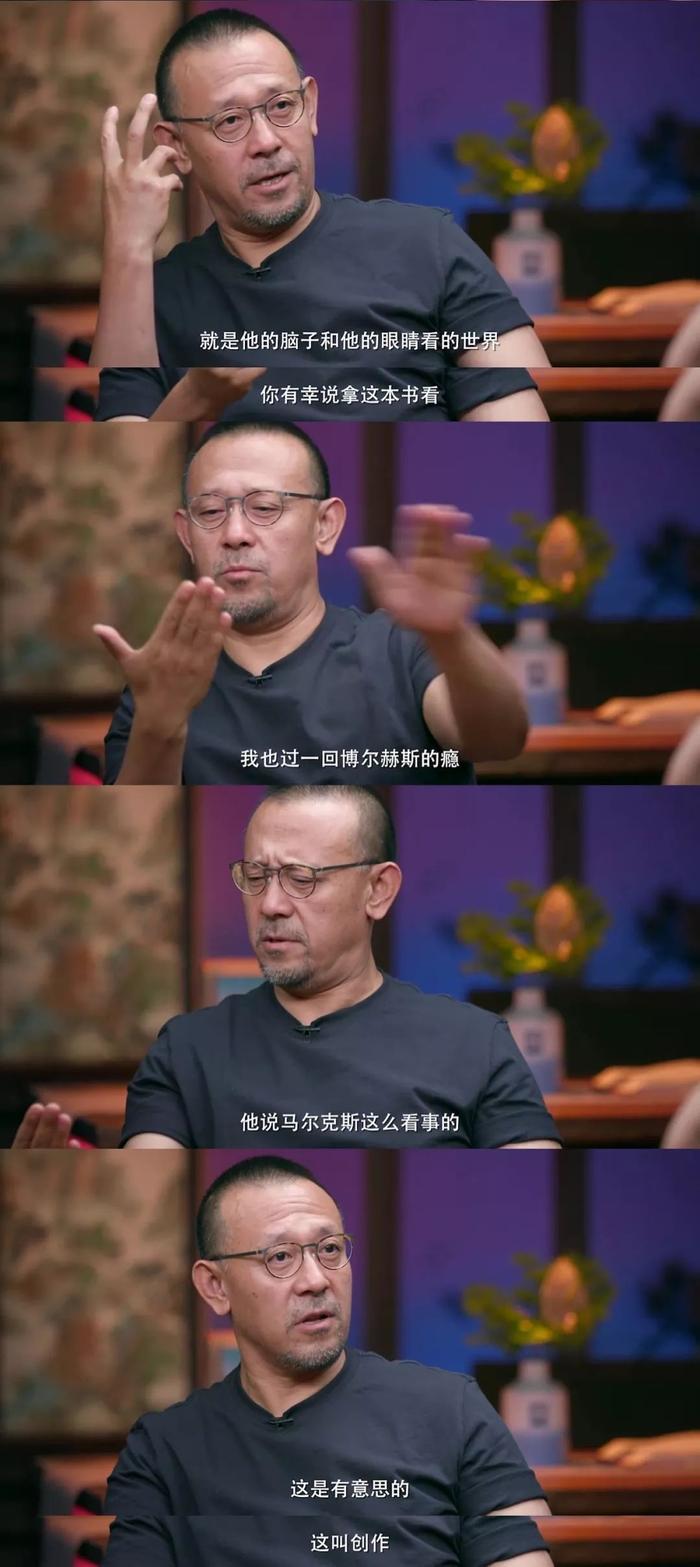 姜文:你必须有大量的对生活本身,所谓“客观的认识”吧,博尔赫斯也是看了很多东西,看到连中国的这个《红楼梦》他都明白,所以他有他的话语权,他有他可以变形的这种权利。