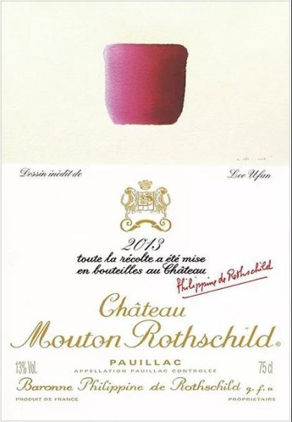 设计者是来自韩国的著名画家李禹焕(Lee Ufan)。图案上的紫色从左至右由浅及深,就如同一款伟大的葡萄酒在慢慢发展成熟。因此,这个简约的设计虽只画了一个紫红色的标志,但真可谓是独具匠心,值得大家以欣赏的目光来理性看待。2014 年,木桐酒庄第五任庄主去世,其子菲利普·赛赫(Philippe Sereys de Rothschild)继位,因此 2013 年份的酒标图案也是新任庄主上任以来精选的第一个年份酒标。