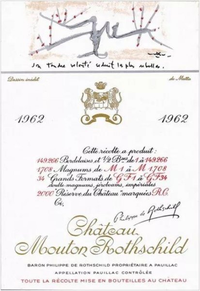 最开始关于酒标的设计,木桐酒庄庄主Philippe de Rothschild男爵想出了一个点子,让每年的酒标都由一个当时有名的艺术家设计。1924年为了庆祝首次酒庄自己罐装成品酒成功,当时的Philippe de Rothschild男爵邀请了当时古巴著名的海报设计师Jean Carlu为这瓶酒设计了一款另类酒标,由此开创了葡萄酒艺术设计的先河。酒庄开始每年在酒标的上部用一幅艺术家的绘画作品作为标签的装饰。这成为木桐酒庄的标志之一,也是它的精明营销手腕的一个代表。很多人仅仅是为了收藏酒标而要将Mouton买齐,这一方法后来也被一些别的酒庄所效仿。(部分朋友是不是有种似曾相识的感觉?小时候为集齐梁山108好汉卡牌,天天省着零花钱去小卖部买小浣熊干脆面)