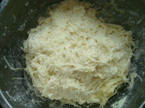 2、萝卜不焯水用盐杀水或者焯水,加面粉、鸡蛋。这样炸好的萝卜丸子形状可以,口感上还是不够酥脆,容易回软。
