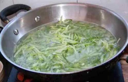 准备一两根白萝卜或者青萝卜,去皮洗净,刨出细丝,锅中加足量清水,大火煮开,把萝卜丝放进去,再次煮到水开捞出,记得不要煮时间太久,就烫软不太硬就好,不建议煮熟烂,否则口感差。