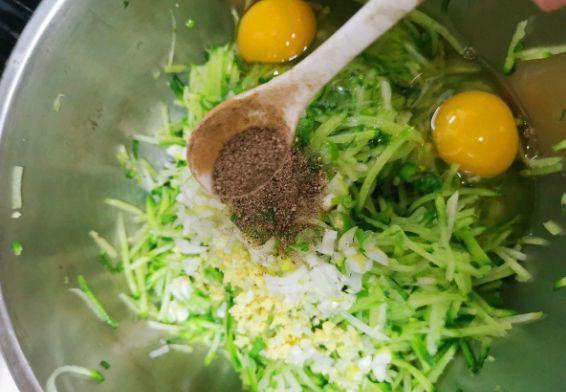 萝卜丝中加食盐、十三香、鸡精、鸡蛋,搅拌均匀,建议调料放好尝味后再放鸡蛋,味道淡一些吃起来更香,如果一个大萝卜,用两个鸡蛋,鸡蛋起到蓬松的效果不能太少。