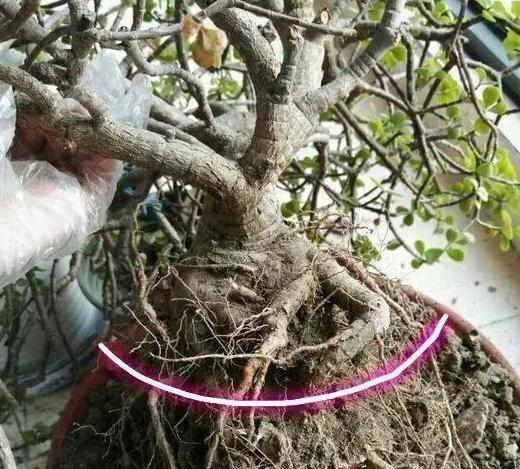 若是自家的金枝玉叶长得快,还可以对根部进行''提根''处理,将一部分的健壮根须裸露在外边,既不会损伤到金枝玉叶正常的成长,同时也能让盆栽变得更为好看、独一无二。