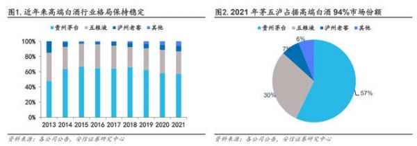 品牌壁垒深厚,竞争格局最优。白酒品牌力的打造历史传承属性强,随时间流逝品牌力护城河愈加深厚,门槛极高,闭环竞争特征凸显,新进入者数量极其有限,短期难以对行业格局形成冲击。从竞争格局来看,高端白酒格局十分稳固,茅五泸常年占据高端市场90%以上的市场份额,共同实现稳健增长,竞争格局在白酒行业中属于最优。