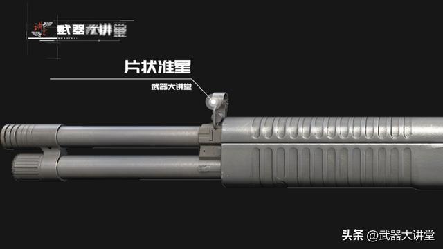 其照门缺口设计得较宽,因此在夜间通过照门缺口恰能看到准星护圈上的两个氚光点,就表示已正确瞄准了,再加上本身也是霰弹枪,所以照门没有必要做的也别细小。