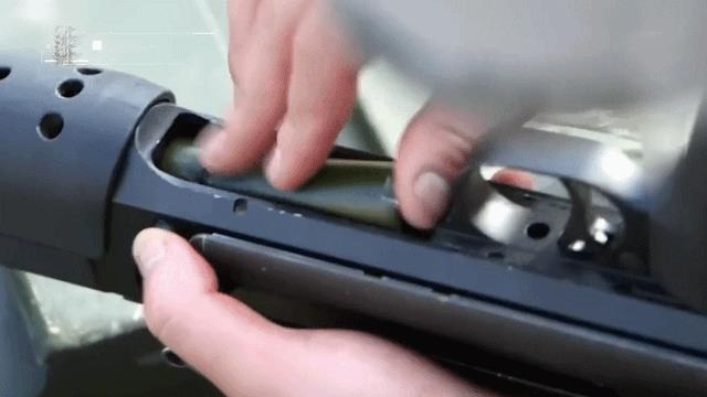 圆环形活塞直接套在管式弹仓外部,活塞预留有两个导气孔,分别是用于在扬尘等恶劣环境使用的大气孔和正常条件下使用的小气孔,通过外部下护木前端面左侧的数字2和1档位调整。你会发现,在档位调整的时候还有一个0档位,这个档位是导气孔关闭档位,在初期设计阶段,设计师认为这款霰弹枪如果在特种环境下例如扬尘、淋雨、浸河水等特种环境使用,必然会出现泥沙侵入造成自动机复进不到位的故障,此时可靠性将会大大降低,在进行大量的结构测试之后决定将霰弹枪的导气调节装置在原来的大、小导气孔两个位置的基础上增加了一档封闭气室位置。