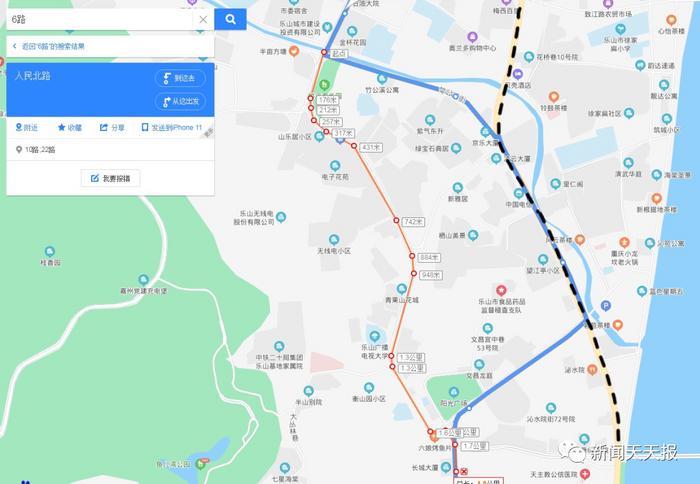 临时新增站点:人民北路↔人民北路青果山路口↔市委党校(老年病专科医院、乐山电大)