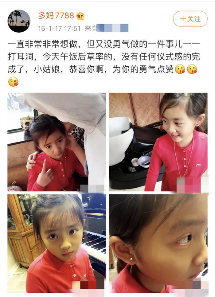 甚至称赞多多打耳洞是完成了一件"一直非常非常想做,但又没勇气做的事......为你的勇气点赞"。