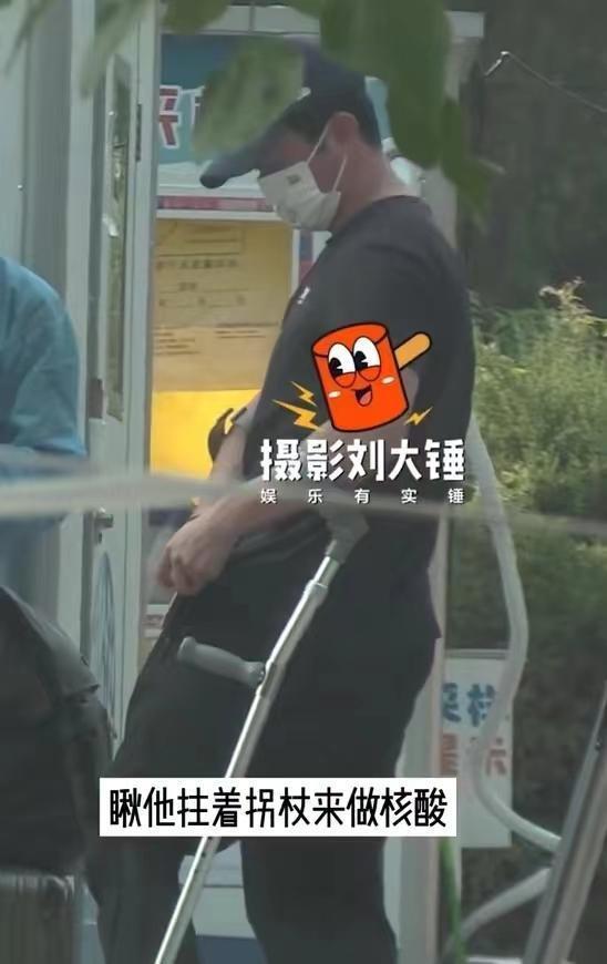 #吴京受伤#、#吴京拄着拐杖做核酸#、#吴京#