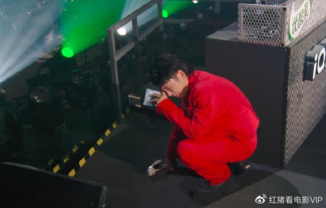主持人因为他的举动,半蹲在地哽咽说不出话来。