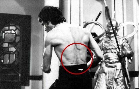 【李小龙展示强壮的身体】李小龙拥有健身爱好者梦寐以求的“蝙蝠背”,而且到了完美的程度。李小龙身高一般,但是肌肉线条很明显,肌肉完美程度至今罕见。