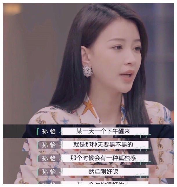 而每次到夜幕降临的时候,就会倍感孤独,这个时候也是很需要有人陪伴的,而孙怡在节目中表示,当时自己正逢很孤独的时候,刚好遇到一个人,这个人和自己彼此相爱,所以才会决定结婚。